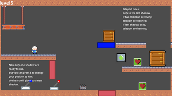 You will control a character to break through puzzles in a 2D world. When your character dies, a afterimage will appear and repeat the path of your previous life, triggering all mechanisms along the way. Join forces with your shadow and break through the puzzles!